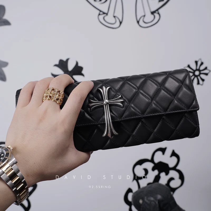 CHROME HEARTS LONG QUILTED WALLET WITH LARGE CROSS